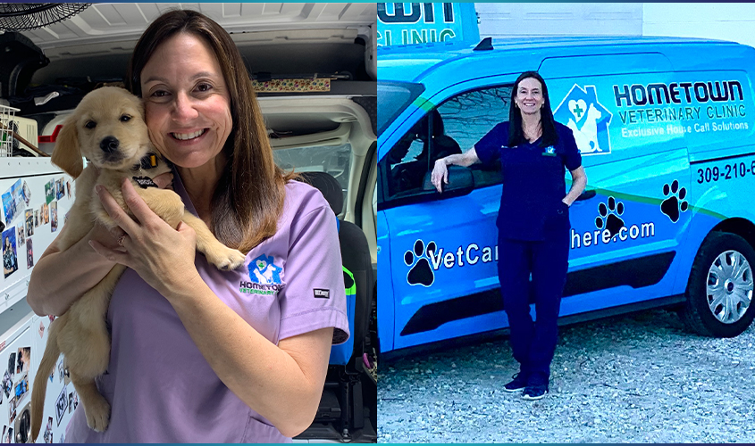 A typical trip to the vet can be stressful for both pet owners and their beloved animals. Kim Springman, DVM ’10, owner of Hometown Veterinary Clinic, addresses those concerns with her mobile operation.