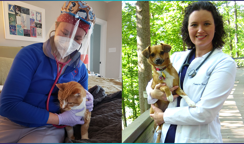 Dr. Tamara Hipp, DVM ’12, originally started her mobile business, Twilight Meadows Mobile Veterinary Services, to perform end-of-life services for cats and dogs in their homes. However, she enjoyed doing home visits so much she expanded her offerings to include preventative care and minor illness needs, treating the most commonly seen non-emergency illnesses, including ear infections, skin issues, minor injuries, and urinary tract infections, for example.