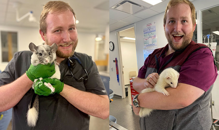 He is passionate about zoo companion species, such as chinchillas, bearded dragons, and birds—all animals that come into the emergency room he works in.