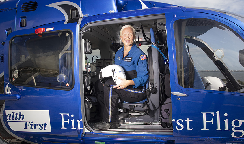 Dr. Dudley, now an emergency medicine physician in Florida, also serves as the assistant medical director of Health First’s First Flight, a helicopter program that makes approximately 700 flights per year covering the state’s Space Coast. First Flight is called for pre-hospital transports, often for severely injured trauma patients where the crew performs life-saving procedures and stabilization, as well as inter-facility transports. Dr. Dudley’s leadership role means that she is teaching and reviewing cases and best practices, updating and adjusting protocols, and maintaining relationships with local cities and towns to help coordinate seamless care.