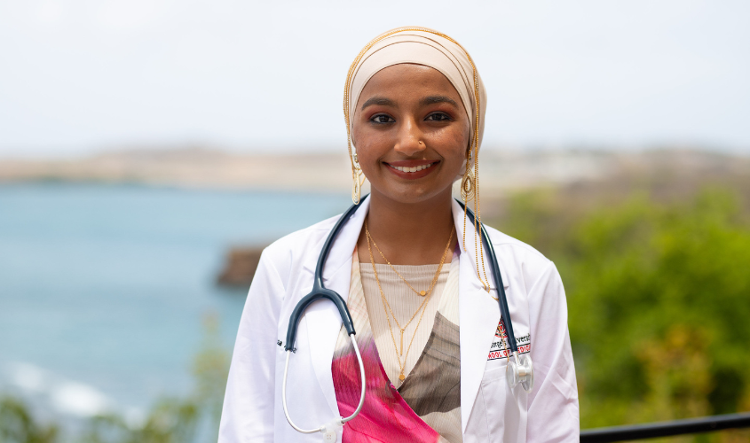 “Being coated is definitely symbolic and means a lot to me. It signals that I’m ready to take on this journey. Previously, I had worked as a scribe and there I met several alumni that became my mentors and recommended I apply to SGU. These mentors helped me along my path and showed me what it really meant to put on the white coat. Just seeing those patient-physician encounters and seeing how helpful and how empathetic they were—I hope to be that type of doctor in the future.”
