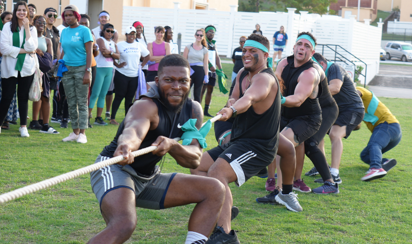 The event took place on the True Blue campus playing field, where students and faculty competed in games that included friendly competition in volleyball, dodgeball, an obstacle course, 100-meter race, 400-meter relay, three-legged and wheelbarrow races, and the highly anticipated tug-of-war. The day also featured a half-time show performance by SGU’s cheerleading squad and ended in a prize giving ceremony announcing this year’s Olympic Champions.